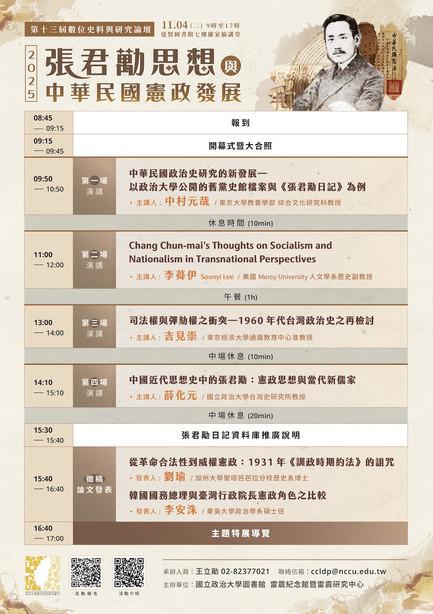 政治大學數位史料與研究論壇2025:張君勱思想與中華民國憲政發展